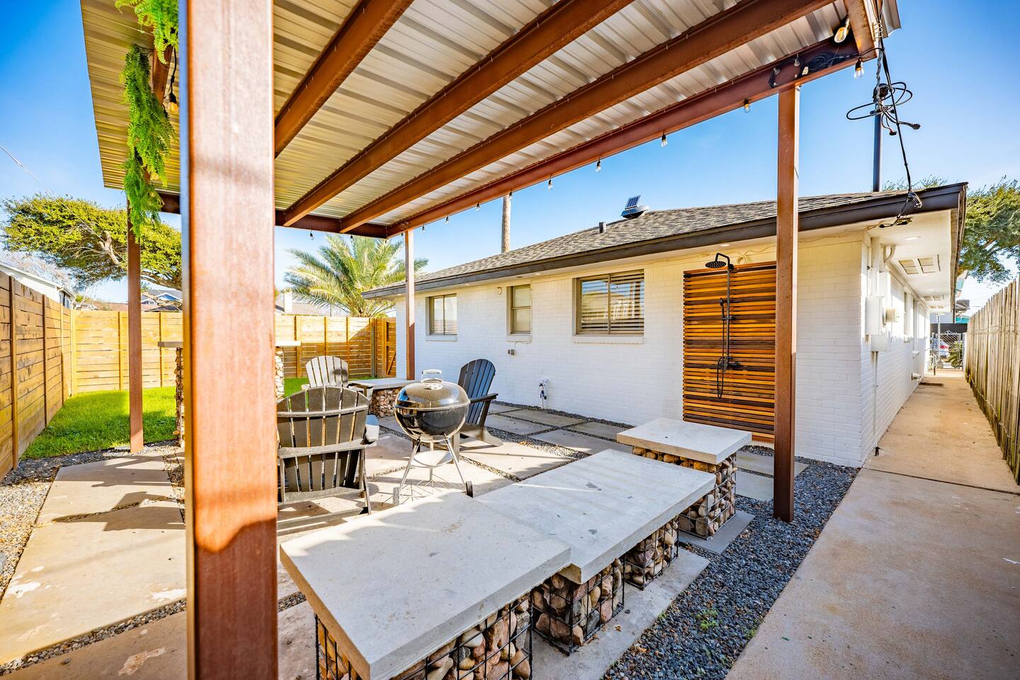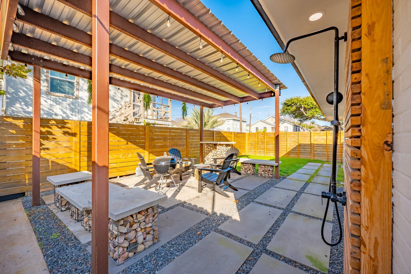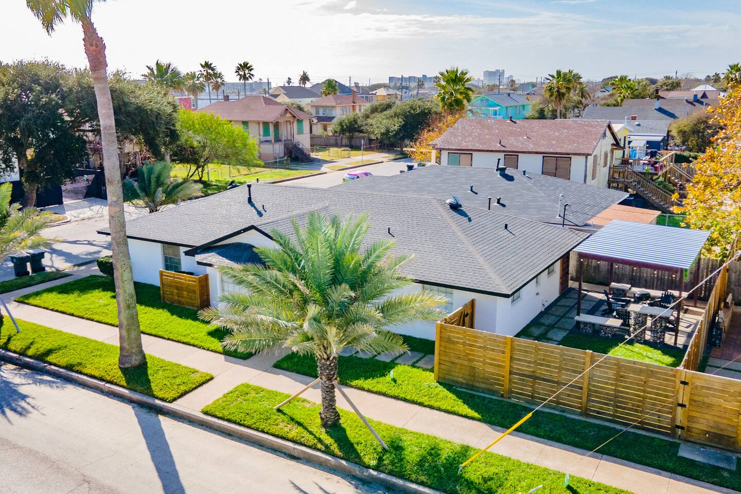 Escape to fabulous 3 Palms Oasis - 2 minute walk to the beach, 3 bedrooms, off of 33rd Street, minutes from Pleasure Pier, Seawall and much more. After all the fun exploring and soaking up the sun, come home to a modern urban retreat that offers everything you could need. Rinse away the day with an amazing outdoor shower, enjoy the backyard patio, get grilling on the BBQ pit and enjoy some ping pong. Come inside to your own relaxing retreat, kick your feet up and enjoy some family time.