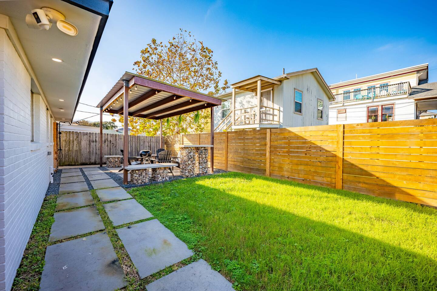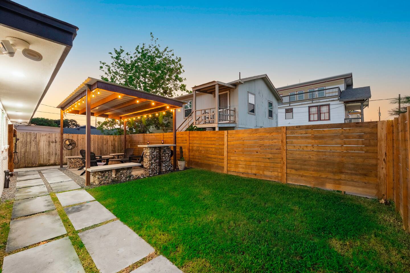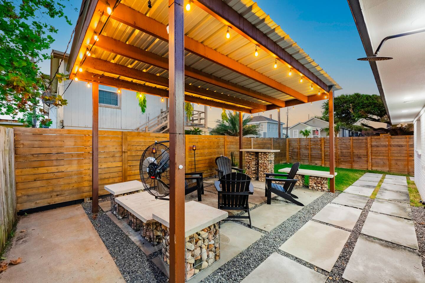 Escape to fabulous 3 Palms Oasis - 2 minute walk to the beach, 3 bedrooms, off of 33rd Street, minutes from Pleasure Pier, Seawall and much more. After all the fun exploring and soaking up the sun, come home to a modern urban retreat that offers everything you could need. Rinse away the day with an amazing outdoor shower, enjoy the backyard patio, get grilling on the BBQ pit and enjoy some ping pong. Come inside to your own relaxing retreat, kick your feet up and enjoy some family time.