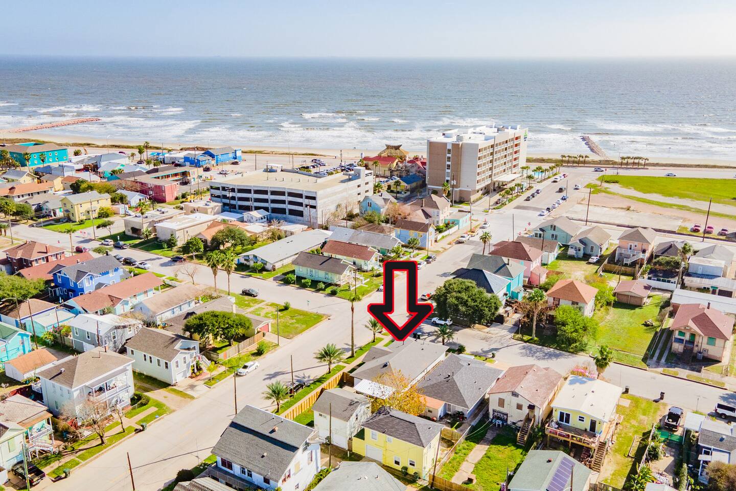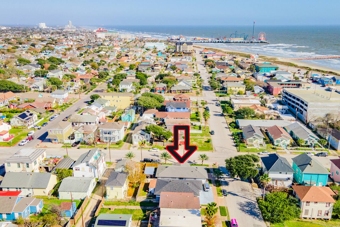 A modern urban design with tranquility of the coast and sophisticated aesthetics making it perfect for hosting family gatherings and holiday celebrations. KEY FEATURES: ☀ 3 spacious bedrooms: ☀ Master Bedroom: 1 King bed with 50'' TV, full en suite bathroom, designated workspace, and ample natural lighting ☀ Secondary Bedroom: 1 King bed with 50'' TV, designated workspace. ☀ Third Bedroom: 2 sets of bunk beds with 50'' TV, designated workspace. Bunk bed 1 has 2 twins, Bunk bed 2 has 1 twin, 1 full ☀ 2 full bathrooms, one located in the Master Suite, one shared located in the hallway, both offering full shower, toilet and vanity ☀ Sleek, modern kitchen with stainless steel appliances, with essential appliances, cookware, and utensils. ☀ K-cup & Coffee Machine ***Local coffee blends provided (Red Light Coffee Roasters & Corduroy Coffee) ☀ Open living room with comfy seating and modern urban inspired décor ☀ Open concept dining area ☀ High Speed + Fast Free Wi-Fi ☀ Smart TV - 4 (BYOL - Bring your own login) ☀ Heat/AC ☀ Ping pong table and board games ☀ BBQ pit ☀ Outdoor seating for relaxing ☀ 2 Minute walk to the beach ☀ Outdoor shower ☀ Smartlock self check-in for guest ease ☀ Stocked with selective beach toys ☀ EV charger ☀ Extra clean pillows & blankets, fresh paper products, cooking basics, shampoo/conditioner, soaps, and hangers will be provided for guests. Less than 5 miles: .1 miles from The Spot Restaurant .3 miles from The Brick House Tavern .3 miles from Joe's Crab Shack .5 miles from Seawall Blvd and the beach .6 miles from Gaidos Seafood Restaurant .8 miles from Galveston Island Historic Pleasure Pier 1.3 miles from Moody Mansion 2.0 miles from Port of Galveston Cruise Port 2.1 miles from Kroger 2.2 miles from Bishops Palace 2.3 miles from The Grand 1894 Opera House 2.4 miles from Katie’s Seafood House 2.5 miles from The Strand 2.5 miles from Randalls 3.0 miles to the Medical District (UTMB) 3.8 miles from Moody Gardens 4.0 miles from Schlittterbahn Waterpark **DoorDash is available with certain vendors